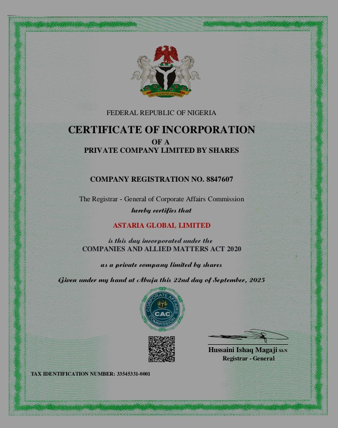 Officially registered with the Corporate Affairs Commission (Nigeria)