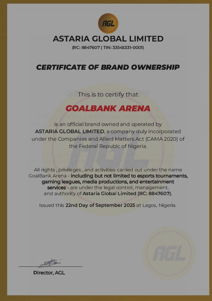 GoalBank Arena is a verified and registered Nigerian platform, engineered for credibility, fairness, and elite competition.